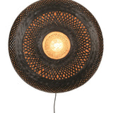 Sa structure en fer robuste garantit une stabilité durable, tandis que le tressage artisanal du bambou crée un jeu d’ombres élégant qui habille vos murs avec caractère. Son câble textile noir de 2,5 m, équipé d’un interrupteur manuel, facilite l’installation et l’utilisation au quotidien.