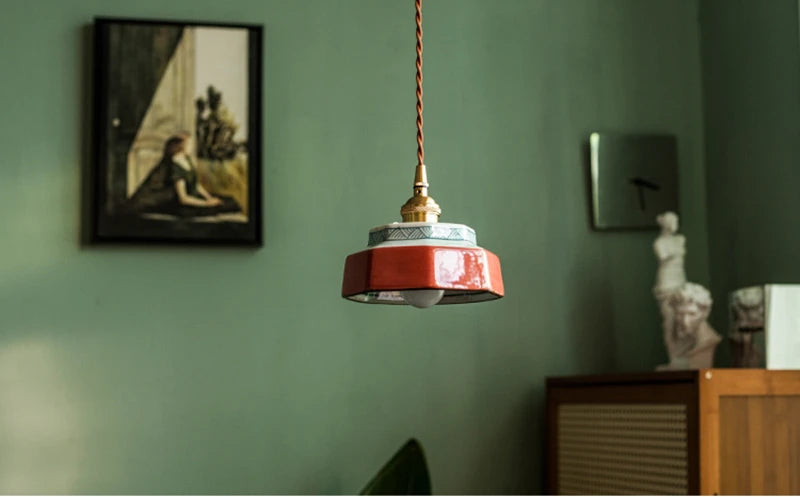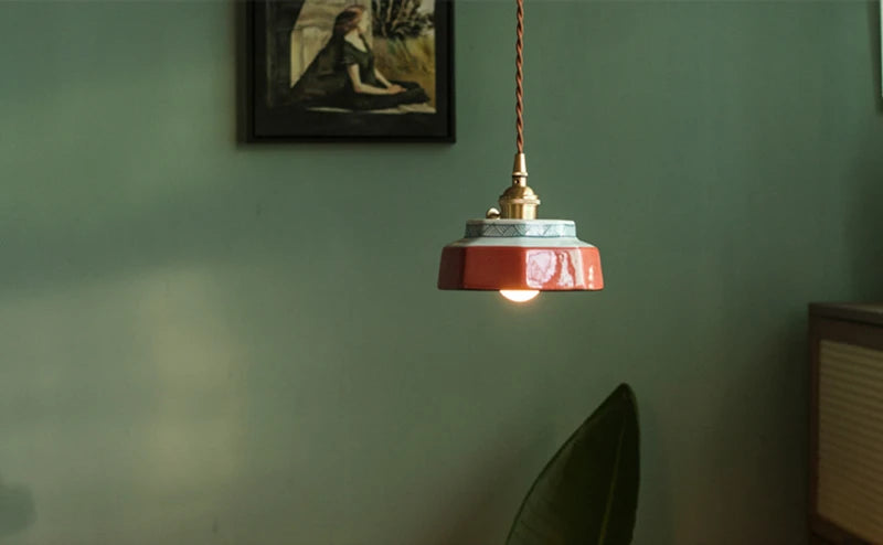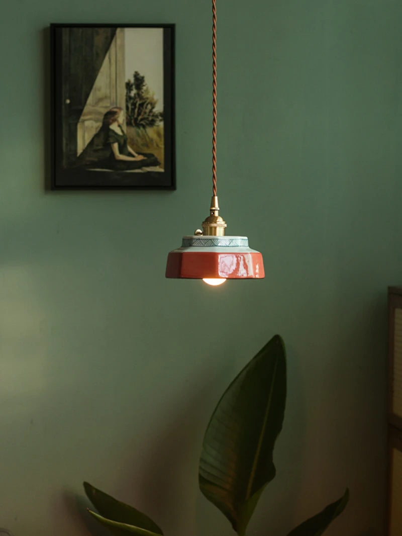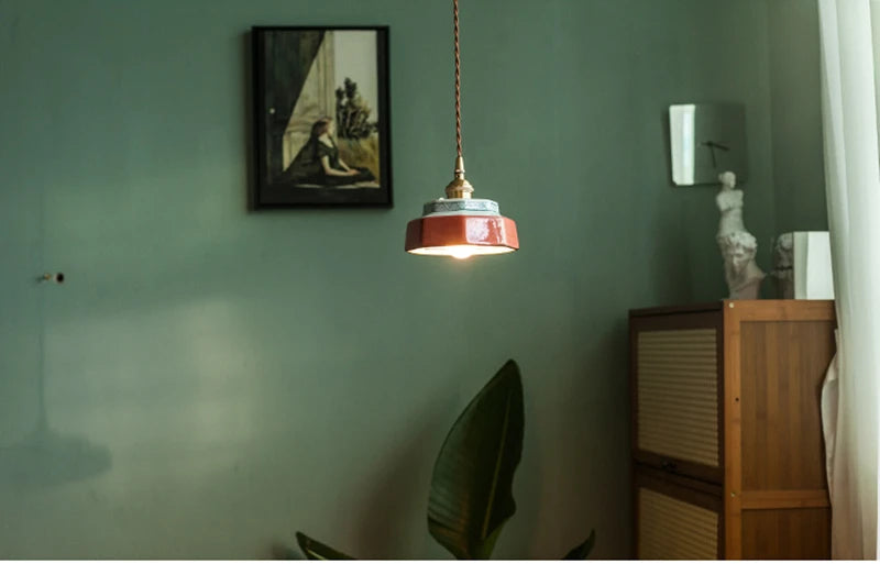 Keramik-Hängeleuchte mit warmem Terrakotta-Vintage-Schirm