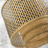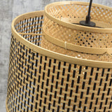 Son piètement élancé en bambou naturel soutient un abat-jour artisanal au tressage noir et naturel, créant un subtil contraste visuel et projetant de magnifiques jeux d’ombres décoratifs. Avec ses dimensions généreuses, ce luminaire devient une pièce maîtresse iconique, parfaite pour habiller et structurer vos espaces avec caractère.