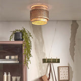 Plafonnier Bhutan Rond Bambou Noir et Naturel 25 cm