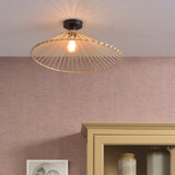 Réalisé en bambou clair tressé et soutenu par une structure en fer, ce luminaire unique projette de subtils jeux d’ombres décoratifs qui habillent vos plafonds avec élégance. Son design asymétrique apporte une touche contemporaine distinctive, faisant de ce plafonnier une pièce décorative centrale qui attire le regard.