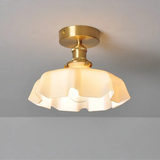 Alliant la finesse du verre laiteux à l’éclat subtil du cuivre, ce plafonnier incarne une modernité élégante et intemporelle. Conçu pour un montage en surface, il s’intègre avec naturel dans une chambre, un salon ou une salle à manger, rehaussant la décoration par sa silhouette sculpturale.