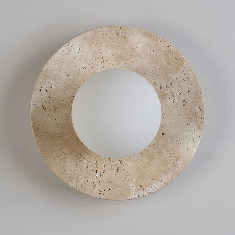 Runde Travertin-Wandleuchte mit weichem Glaslicht im Vintage-Stil