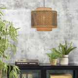 Suspension Bhutan Bambou et Fer Noir Naturel Ø40 cm