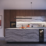 Équipée d’une LED intégrée de 41W (5354lm, CRI91), elle offre un éclairage puissant, durable et écoénergétique, idéal pour illuminer une table, un bureau ou un espace de réception. Son format long et fin crée un effet visuel aérien, donnant une impression de légèreté à la pièce.