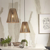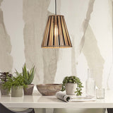 Donnez une touche graphique et chaleureuse à votre intérieur avec la suspension Merapi 30 cm. Son abat-jour légèrement évasé, mêlant bambou naturel et noir, diffuse une lumière douce et enveloppante, parfaite pour un salon, une salle à manger ou une chambre.