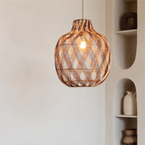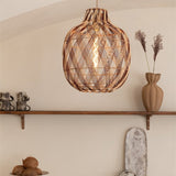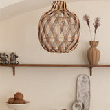 Le contraste subtil entre le bambou clair et les nuances brunes sublime son tressage artisanal et permet de projeter de magnifiques jeux d’ombres raffinés sur vos murs et plafonds. Ses proportions équilibrées en font une pièce décorative polyvalente, capable de s’intégrer dans des univers bohèmes, naturels ou contemporains.