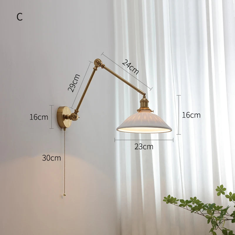Vintage-Wandleuchte aus Messing mit breitem Keramikschirm