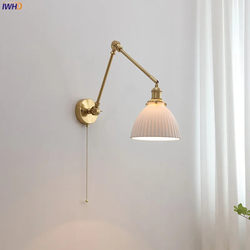 Vintage-Wandleuchte aus Messing mit gewölbtem Keramikschirm